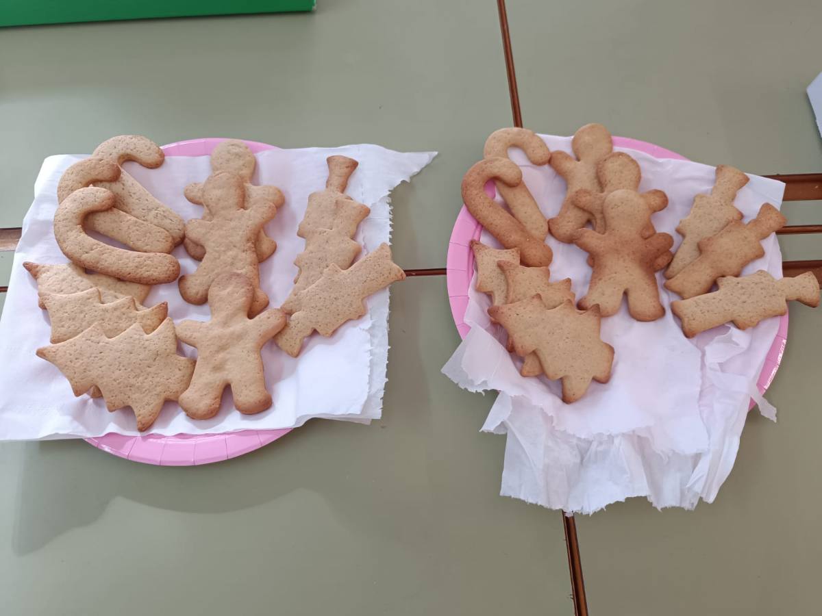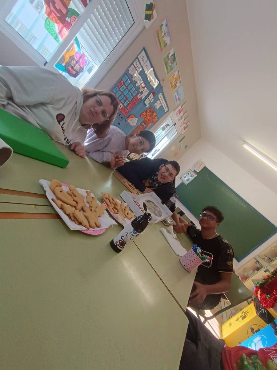 Aprovechando la llegada de la Navidad y con la ilusión de estrenar nuestro nuevo horno, el alumnado del aula específica ha comprado en el supermercado local todo lo necesario para hacer unas ¡¡ricas, deliciosas y navideñas galletas!!