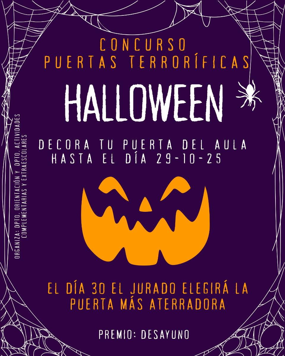 Usted está aquí: Inicio / Actividades Extraescolares y Complementarias / Concursos / Concurso de puertas de Halloween 2025🚪