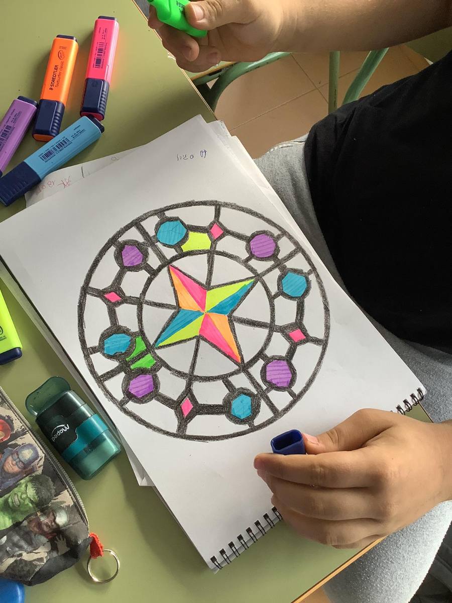Con 3º ESO en Educación Plástica, Visual y Audiovisual exploramos la magia de las vidrieras de las catedrales góticas. Nos inspiramos en sus formas y colores para diseñar nuestras propias vidrieras, aplicando trazados geométricos y experimentando con la luz y el color al iluminarlas.
